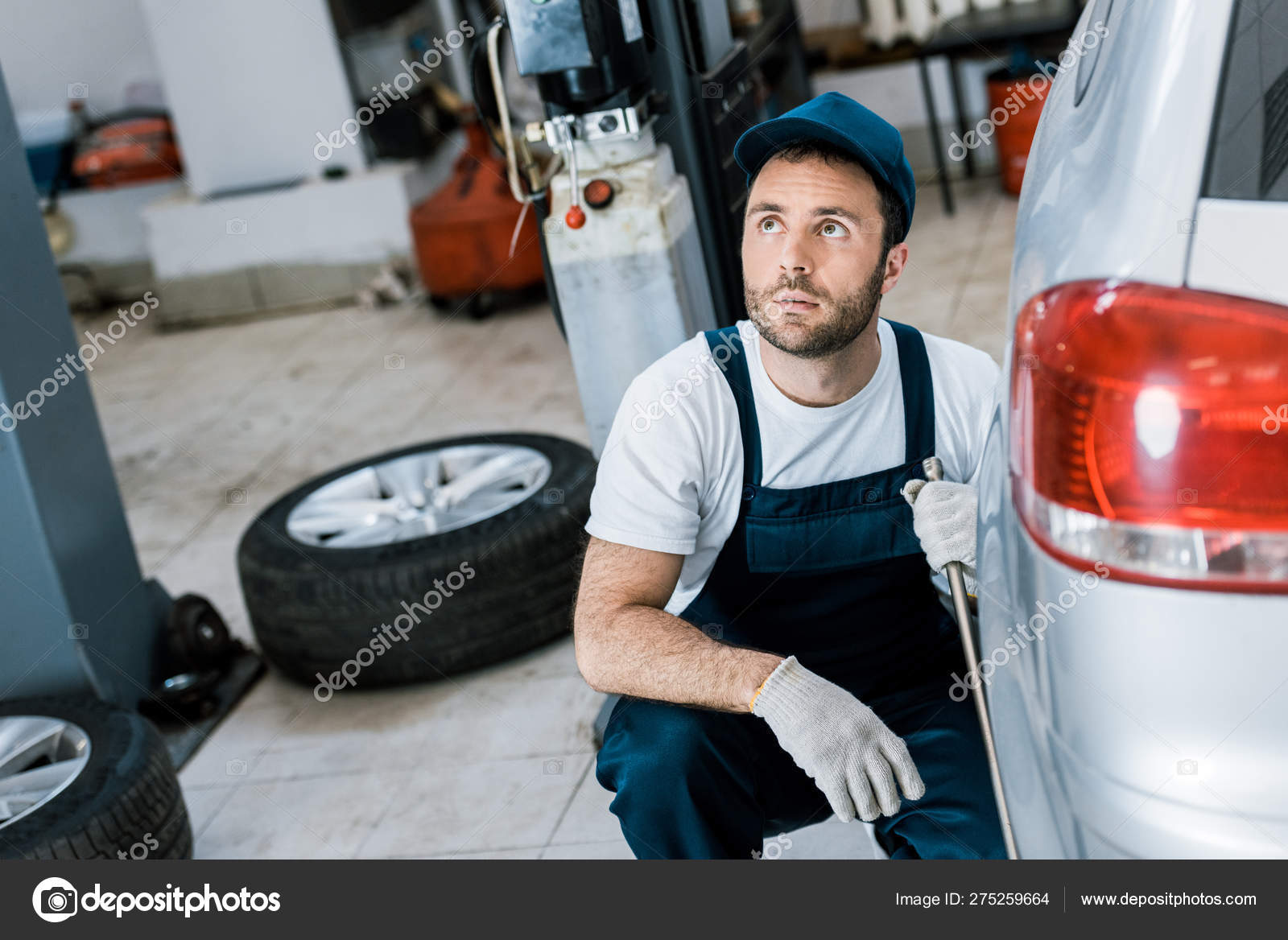 Selective Focus Handsome Car Mechanic Uniform Holding